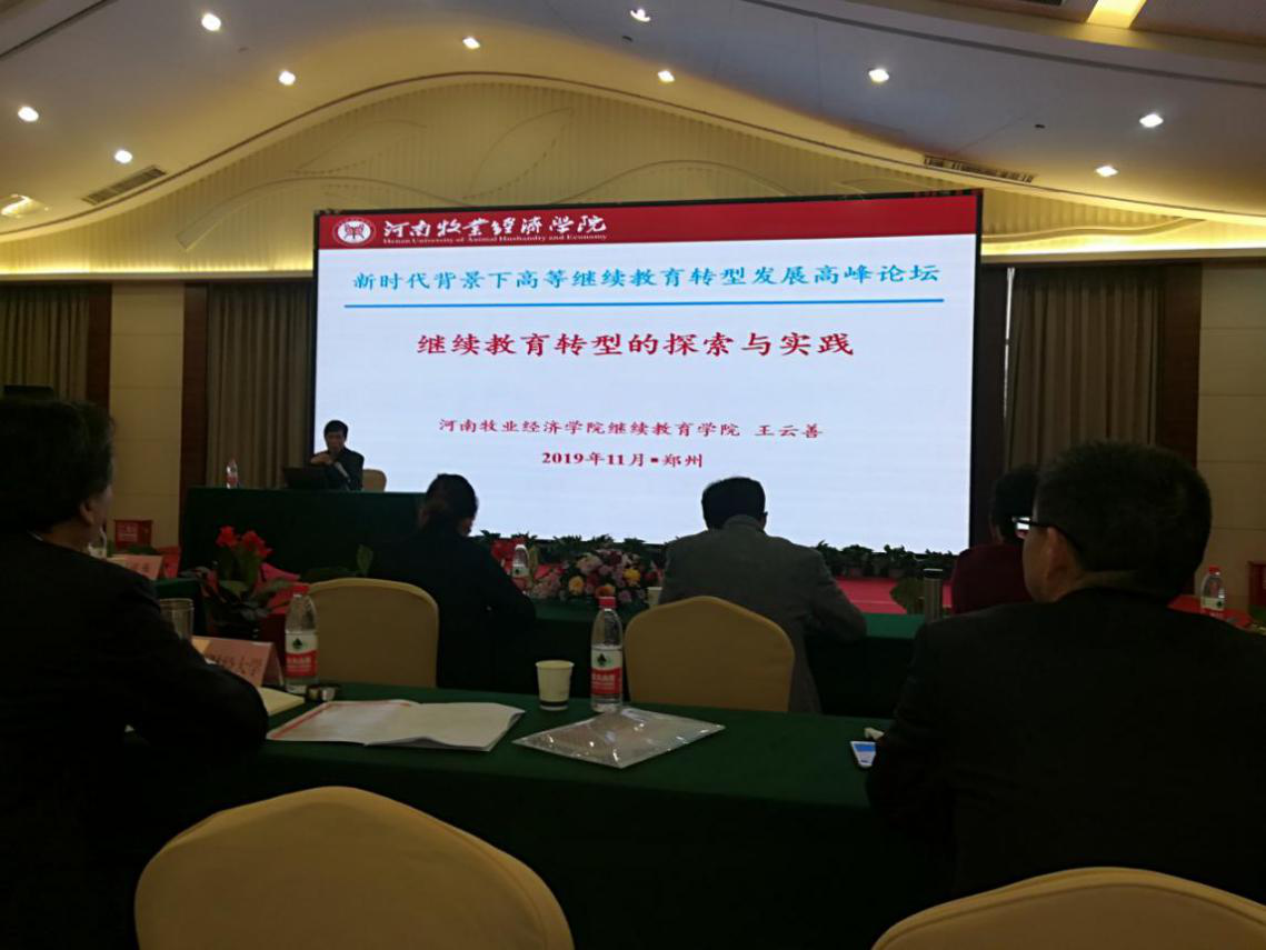 为切实践行“不忘初心、牢记使命”主题教育,根据学院安排,11月8——9日,beat365英国官方网站副院长王云善带队参加了在郑州市举办的“新时代背景下高等继续教育转型发展高峰论坛”。会议由河南省继续教育学会主办,来自新疆财经大学、玉林师范学院、郑州大学、河南大学等省内外80多所高校的150多名代表参加了大会。