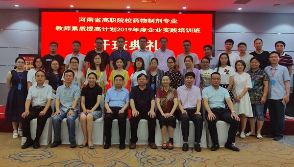 7月15日上午,由beat365官网承办的2019年高等职业院校教师素质提高计划“药物制剂专业”骨干教师企业实践培训班在后羿集团航空港区生产基地举行开班典礼。副校长杨志清,后羿集团董事长吴红云,制药工程学院党总支书记杜鹏娟、院长刘永录,beat365英国官方网站副院长王云善以及全省15所高校的25名参训学员参加了开班典礼。