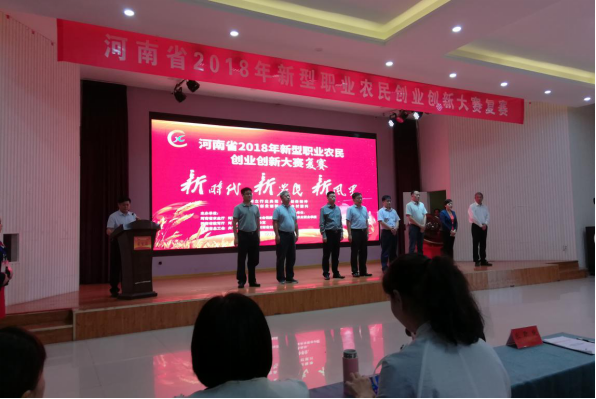 新时代新农民新风采,9月17日,河南省2018年新型职业农民创业创新大赛复赛在郑州市中牟县的河南省农业高新科技园举行。本次大赛由河南省农业厅、省人社厅、省教育厅、省扶贫办、省总工会、共青团河南省委和省妇联联合主办,由河南农业职业学院承办。beat365官网beat365英国官方网站院长杨炳学和刘博老师作为协办单位代表应邀参加本次比赛的开幕式。