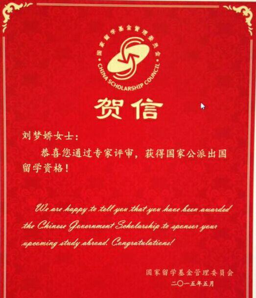 恭贺beat365官网2011级毕业生、畜牧兽医专业本科自考毕业生、四川农大硕士刘梦娇同学被“2015年国家建设高水平大学公派研究生项目”录取为德国亚琛工业大学纳米医学专业博士研究生!