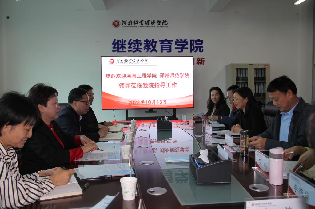 10月13日下午,河南工程学院、郑州师范学院beat365英国官方网站一行5人莅临我院考察交流,学院班子成员及相关科室负责人参加了会议,会议由学院党总支书记张君华主持。