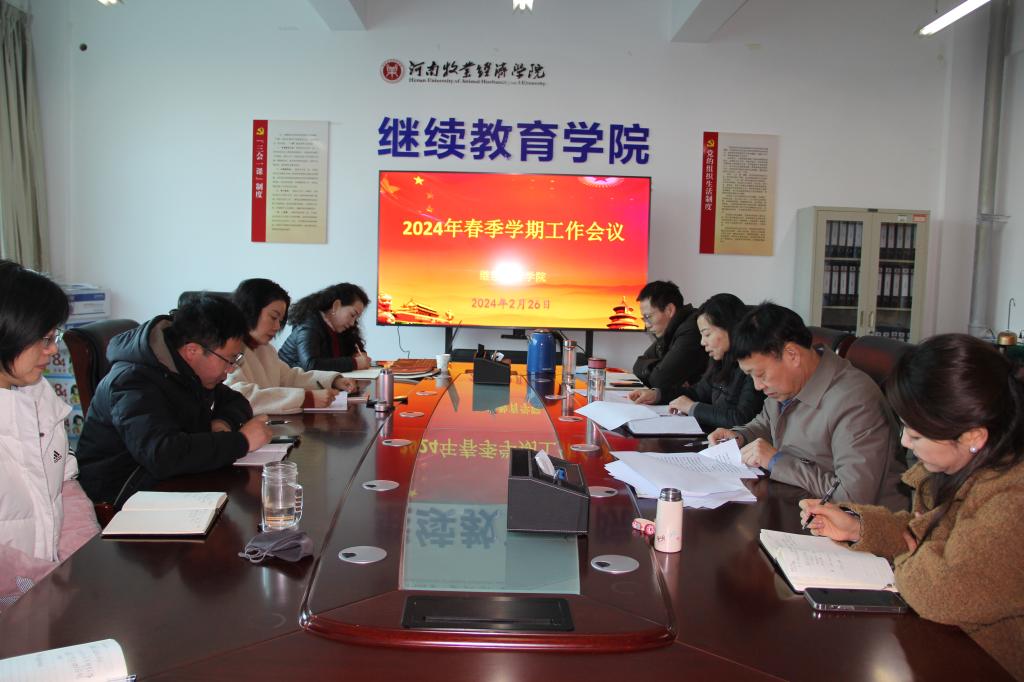 院长宋平对beat365英国官方网站2023年工作和寒假开展的工作进行了总结和回顾,并根据2024年中央1号文件、2024年河南省政府工作报告、河南省2024年教育工作会议精神,结合beat365官网2024年党政工作要点和学院实际,分析了我国继续教育面临的形势任务,对学院2024年工作重点进行了详细讲解。他指出:一是要提早谋划,持续推进。要结合学校党政工作要点和目标任务,做好开学初各项准备工作,细化责任分工,加强统筹协作,逐级推动落实,在党建工作、科研创新、教育教学、培训等方面持续发力,提质增效;二是要改变作风、转变观念。要深刻认识到脚踏实地、求真务实是做好各项工作的重要保障,善于摒弃固化思维,在工作创新、教学改革、服务社会等方面持续强化学习、提升能力、改进作风,切实增强工作的主动性、科学性与预见性,进一步解放思想、追求实效,把落实整改作为推动工作、加快发展的具体行动,增强继续教育服务供给能力;三是要坚持“大继续教育理念”,结合高等教育新的发展需求和职业教育改革要求,对标对表上级部门工作要求,不断完善体制机制,强化管理,提高团队素质,主动服务社会对继续教育需求;四是学历教育要在“精”上下功夫,校内以不断提高教育教学质量为目标,校外引进优质教育资源,提高管理和教育教学水平;五是非学历教育要在“强”字上做文章,持续贯彻落实《beat365英国官方网站非学历教育培训管理办法》,探索对校内各类继续教育项目实行“管办分离”的管理模式,积极引导校内力量投入非学历教育培训,服务社会不同层次需求。