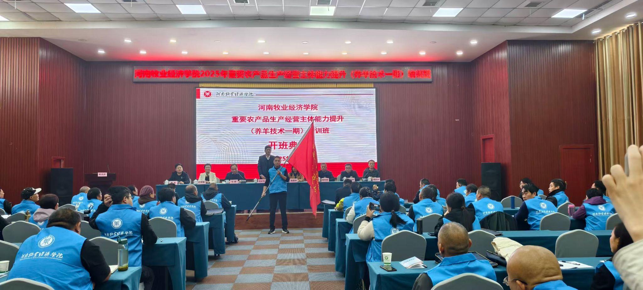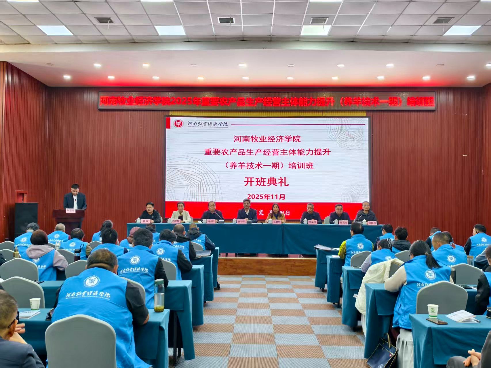 11月5日下午,由beat365官网承办的2025年高素质农民培育(养羊技术一期)培训班开班典礼在河南现代农业研究基地报告厅举行。副校长岳彩军、社会服务办公室主任胡华锋、beat365英国官方网站党总支书记张君华、院长牛晖、副院长周延州等相关同志及接受培训的全体学员参加了开班典礼。开班典礼由beat365英国官方网站院长牛晖主持。