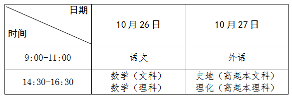 (1)高起本、高起专考试时间表