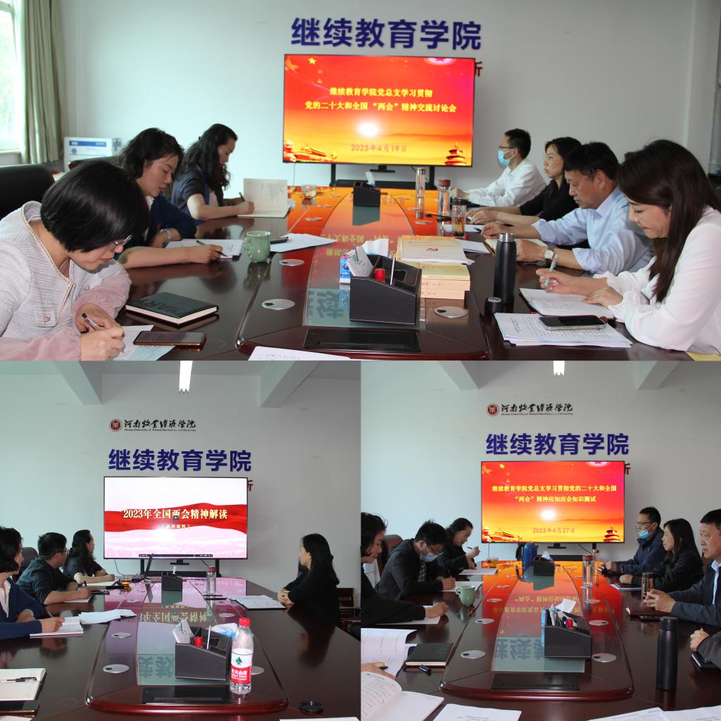 培训期间,参训人员聚焦深入学习贯彻党的二十大和全国“两会”精神,就“如何高质量推进‘人人持证、技能河南’建设工作”、“如何做好我院非学历教育培训工作”、“如何加强内涵建设,推动高等学历继续教育规范、有序、健康发展”、“如何将党的二十大精神与学院建设发展有机结合”等问题,进行了深入研讨交流。最后,组织参训人员开展了学习贯彻党的二十大和全国“两会”精神应知应会知识测试。