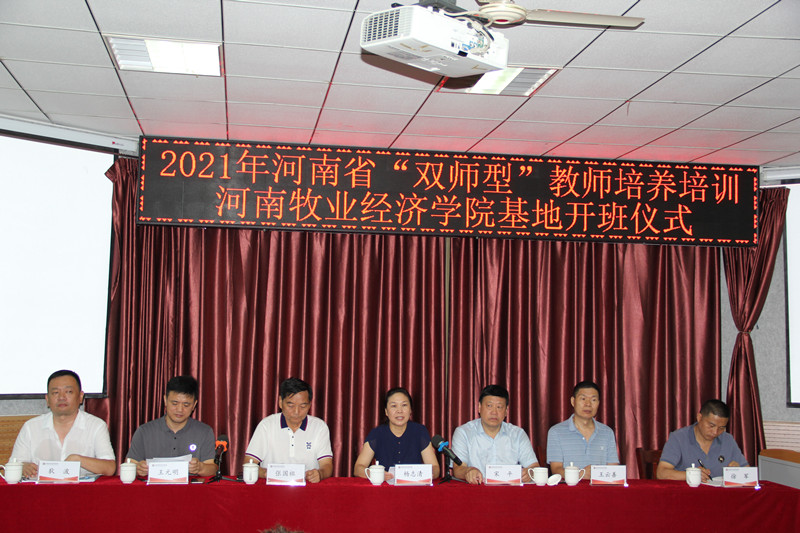 7月7日上午,由省教育厅主办、beat365官网承办的2021年河南省“双师型”教师培养培训开班仪式在北林校区教学楼A200隆重举行。副校长杨志清应邀出席,河南康星药业股份有限公司董事长张国祖,beat365英国官方网站院长宋平,beat365英国官方网站副院长王云善、王元明,培训班班主任狄波、徐军出席了仪式,仪式由宋平主持。