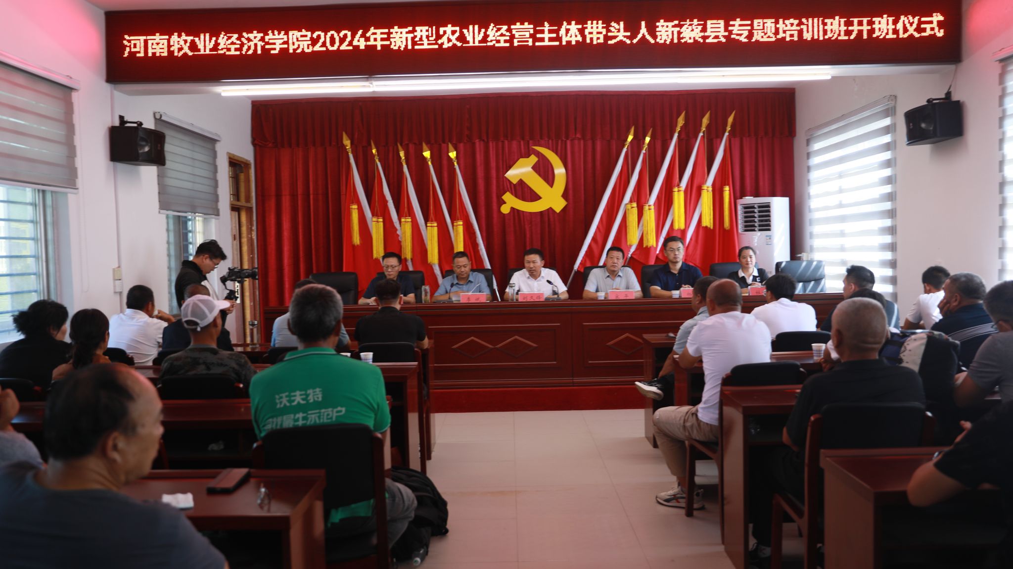 2024年9月3日,beat365英国官方网站2024年新型农业经营与服务主体带头人示范新蔡县专题培训班在新蔡县农业农村局会议室开班,新蔡县副县长刘久锋、新蔡县农业农村局党组书记、局长李斌、新蔡县农业农村局副局长杜萍、河南日报高级记者孙高成、beat365英国官方网站beat365英国官方网站院长宋平教授、beat365英国官方网站beat365英国官方网站副院长周延州、新蔡县农业农村局畜牧股股长程道辉等领导出席,开班典礼由新蔡县农业农村局党组书记、局长李斌主持。