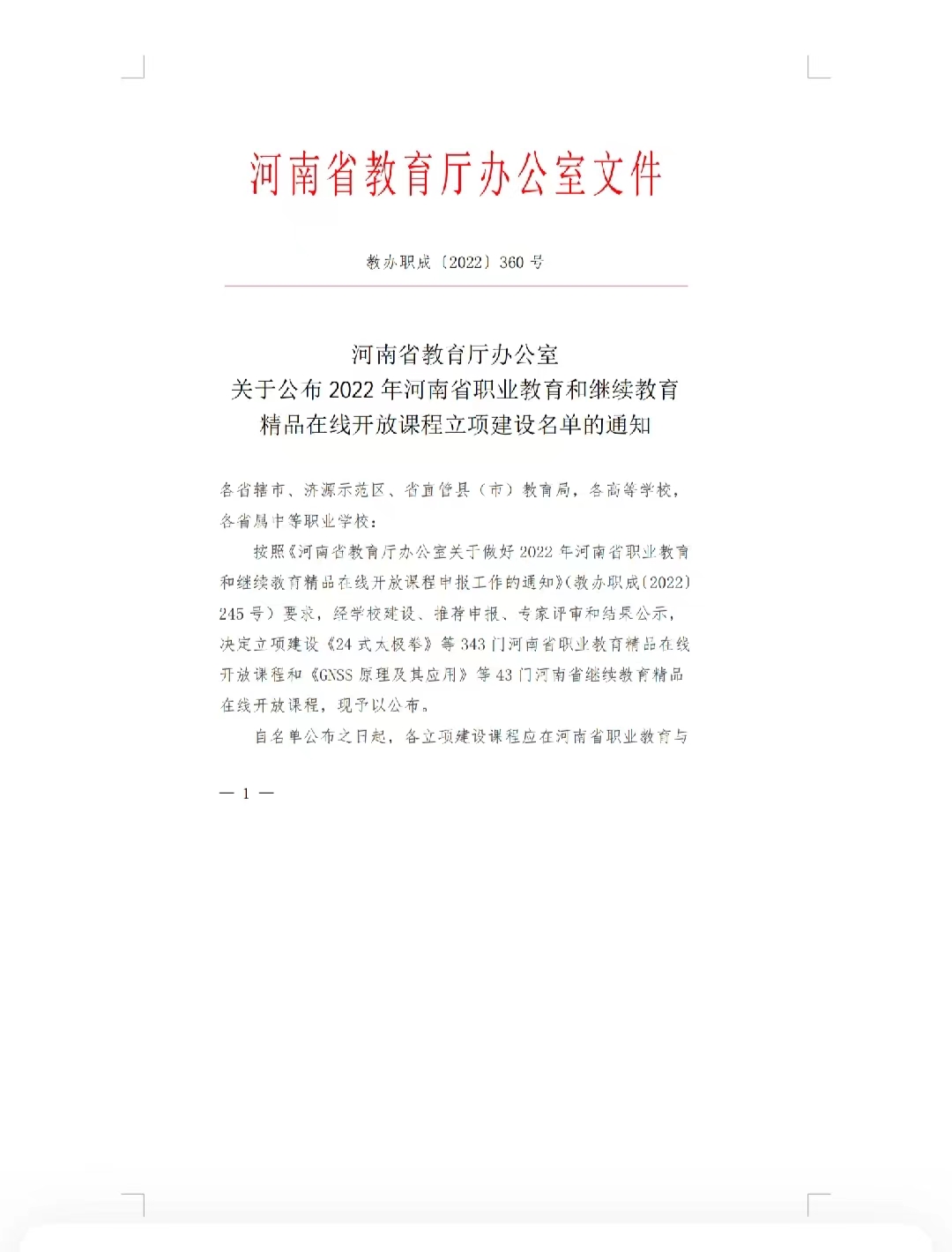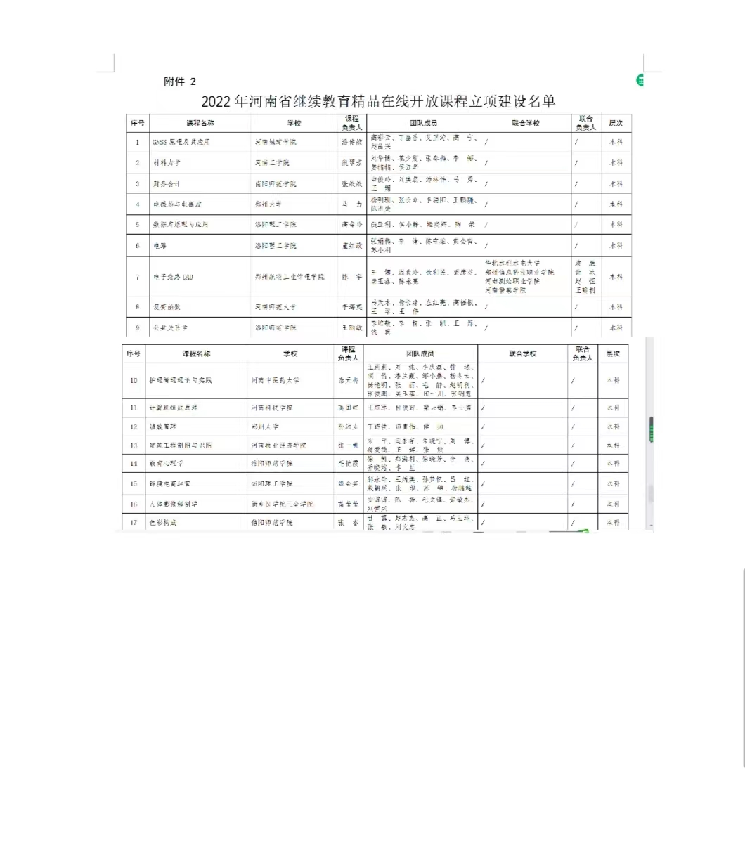 按照《河南省教育厅办公室关于做好 2022 年河南省职业教育和继续教育精品在线开放课程申报工作的通知》(教办职成〔2022245 号)要求,经自主审报、学校组织专家评审推荐,beat365官网张一帆团队申报的《建筑工程制图与识图》顺利通过教育厅组织的专家评审,被确定为2022年河南省继续教育精品在线开放课程立项建设课程,这是beat365官网两年来第4门立项建设的省级继续教育在线开放课程。