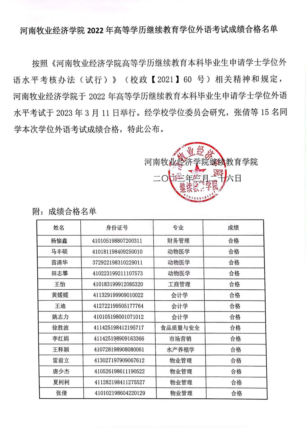 beat365英国官方网站2022年高等学历继续教育学位外语考试成绩合格名单公示