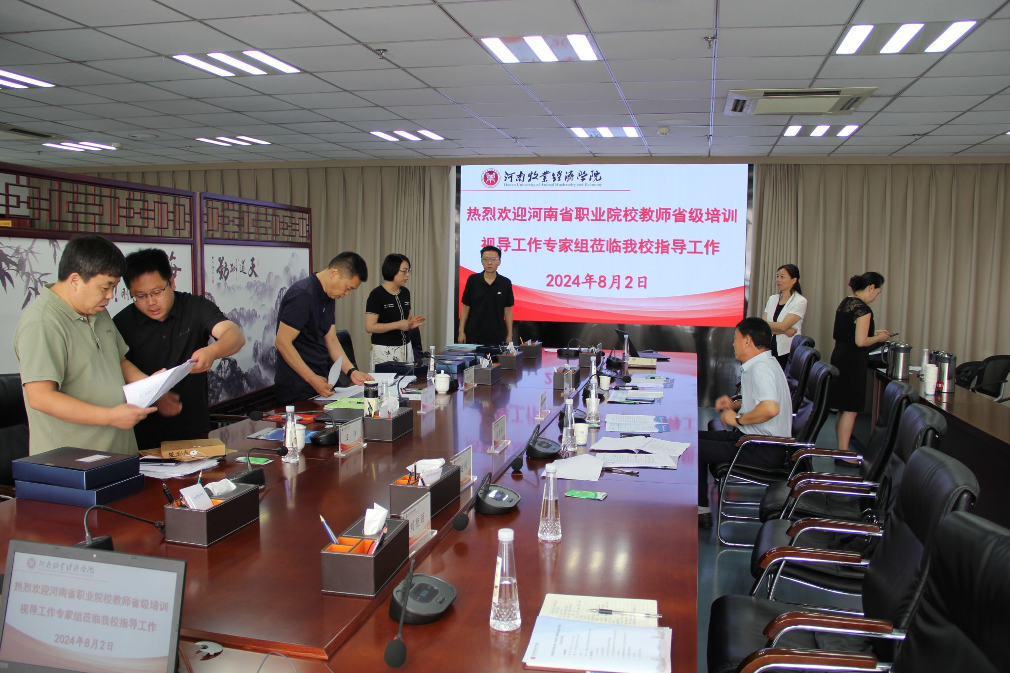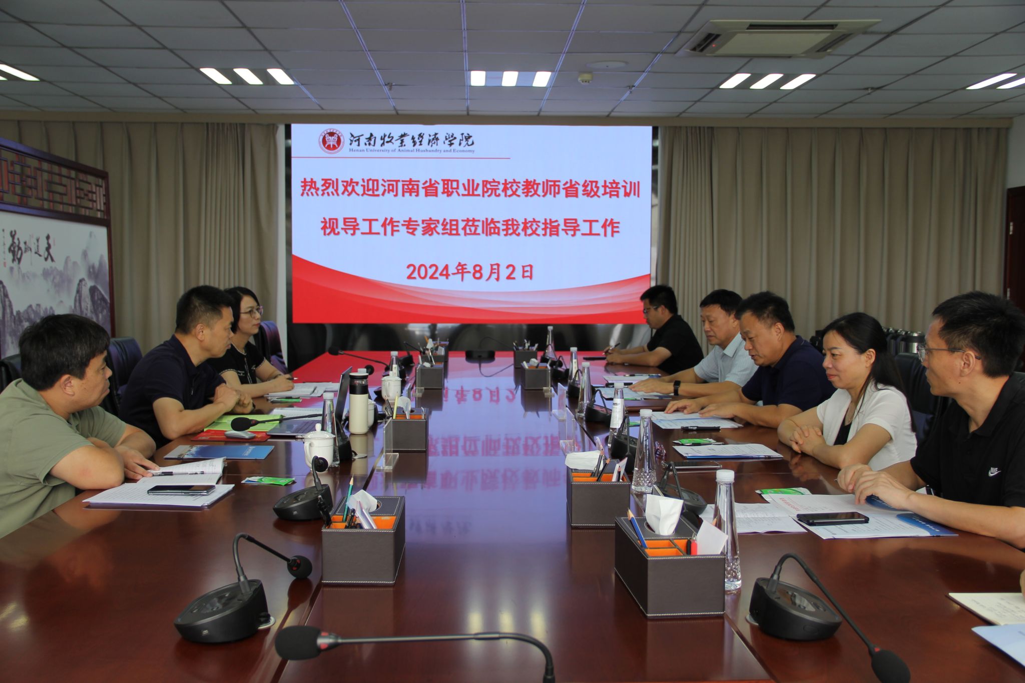 8月2日上午,河南省职业院校“双师型”教师省级培训专项视导组一行3人莅临beat365官网双师培训基地进行视导。专家组由河南经贸职业学院教学副校长康坤、河南农业职业学院教务处长智丽红、郑州工业安全职业学院招生就业处副处长王伟组成。河南牧业经学院副校长席磊出席视导会并致辞,beat365英国官方网站党总支书记张君华、院长宋平、副院长周延州及培训管理人员参加会议。会议在龙子湖校区图书馆841举行,beat365英国官方网站党总支书记张君华主持汇报会。